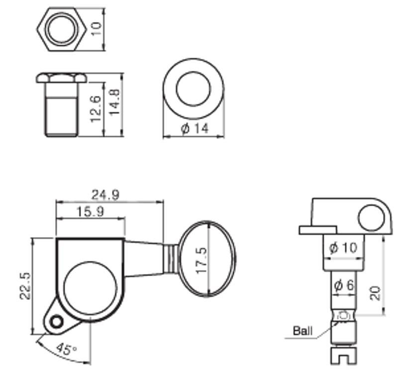 These tuning machines feature firm gearing and 15:1 ratio for tuning stability.