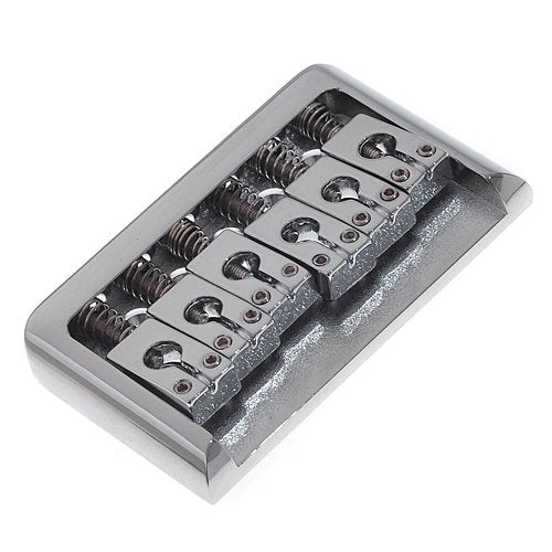 Modern chrome plated zinc saddle on a steel plate with five screw string through mounting.