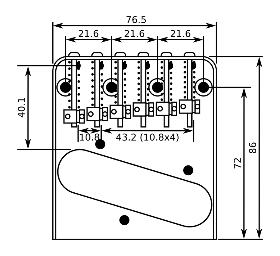 This bridge fits a standard Tele® pickup, and is designed for both string through mounting and use as a top loader.